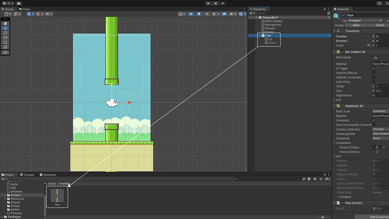 [SerializeField] GameObject pipe; // pipe Prefab을 지정