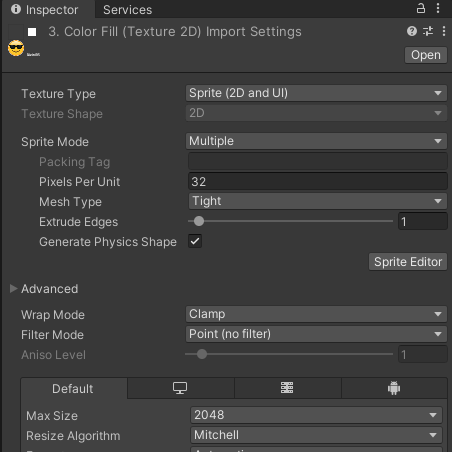 Sprite Editor에서 분리해주세요