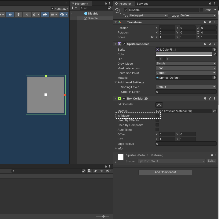 Disable에는 Collision Collider 생성해주고