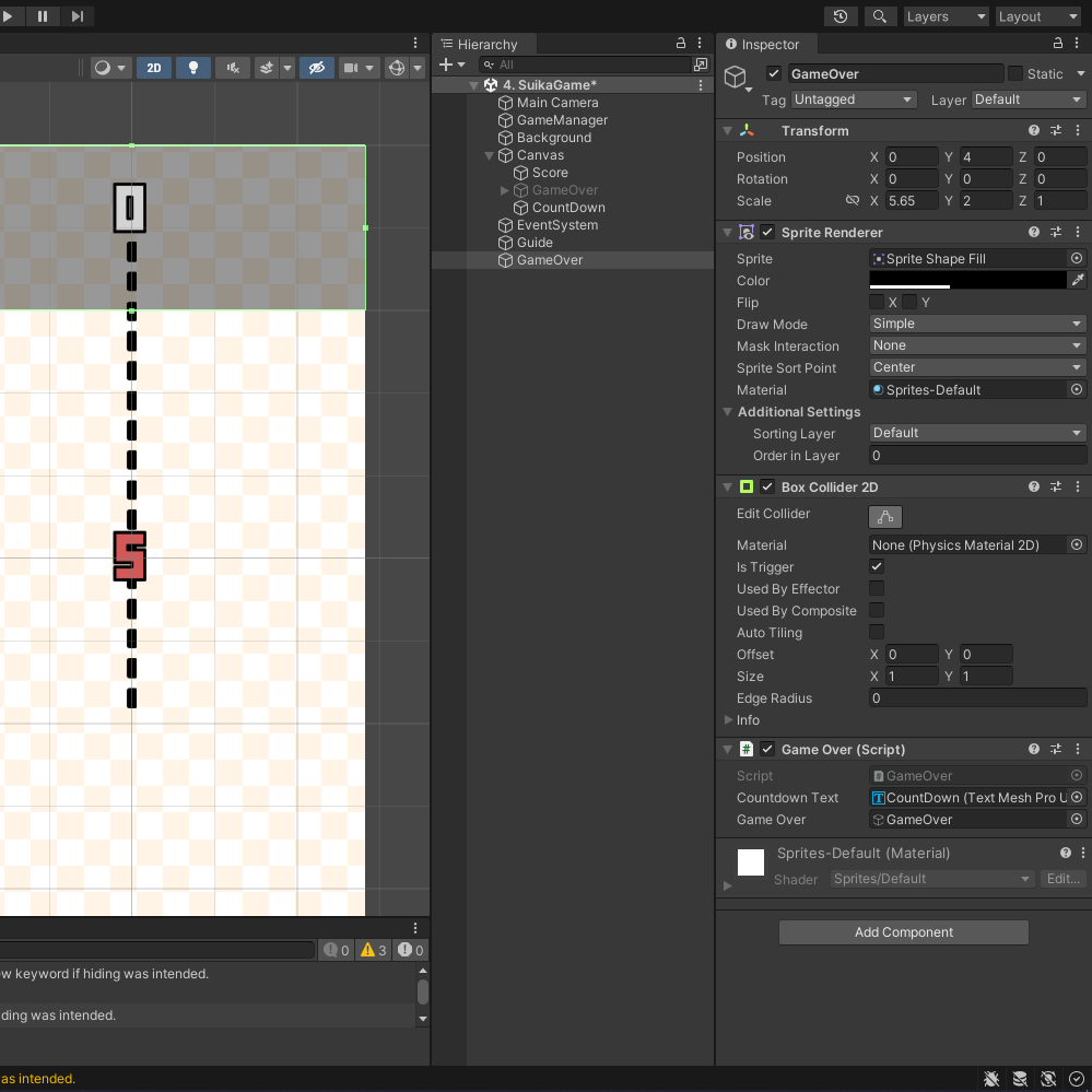 - 시간이 끝나면 Game Over UI 활성화 및 카운트다운 텍스트 비활성화.