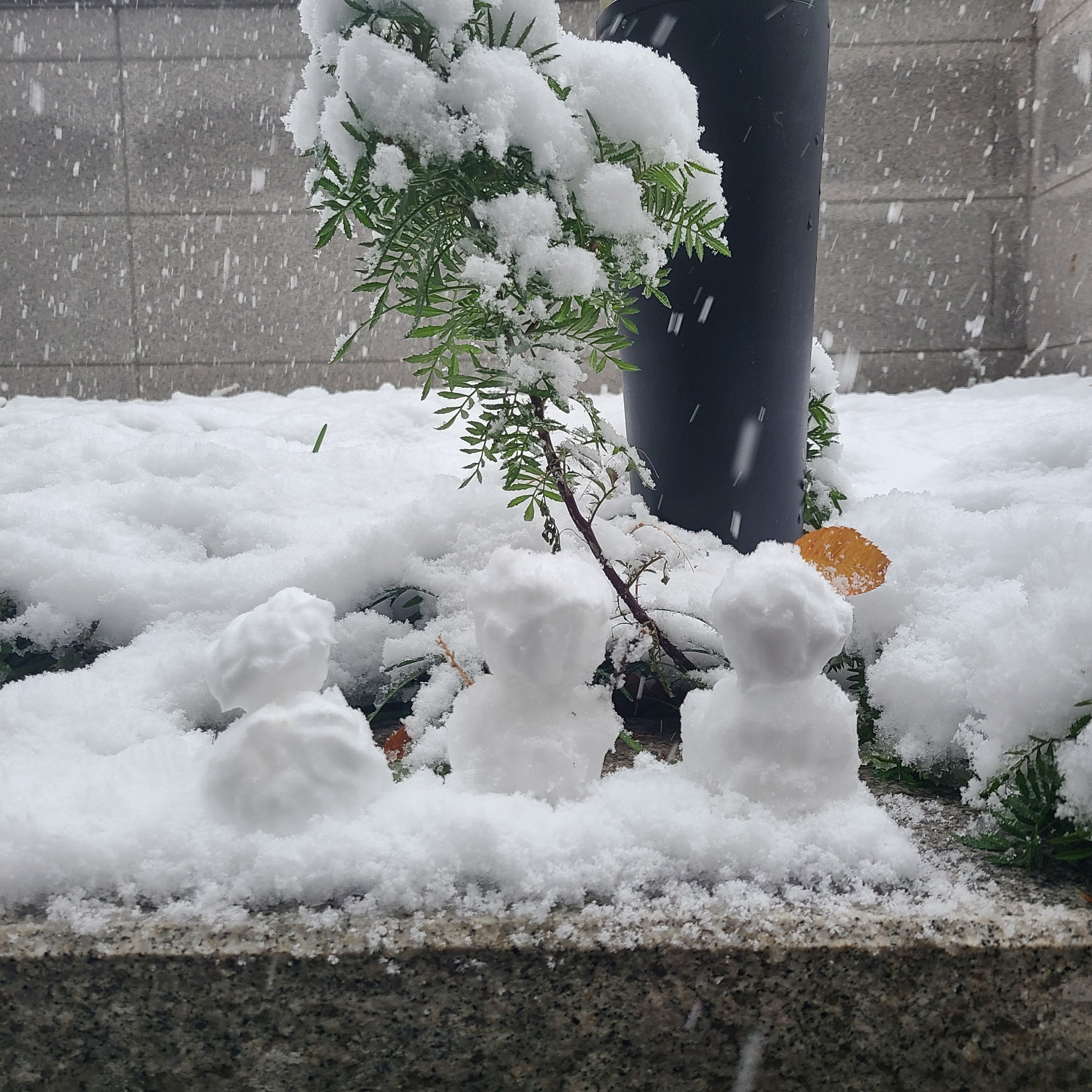 오늘 점심시간에 만든 눈사람과 함께