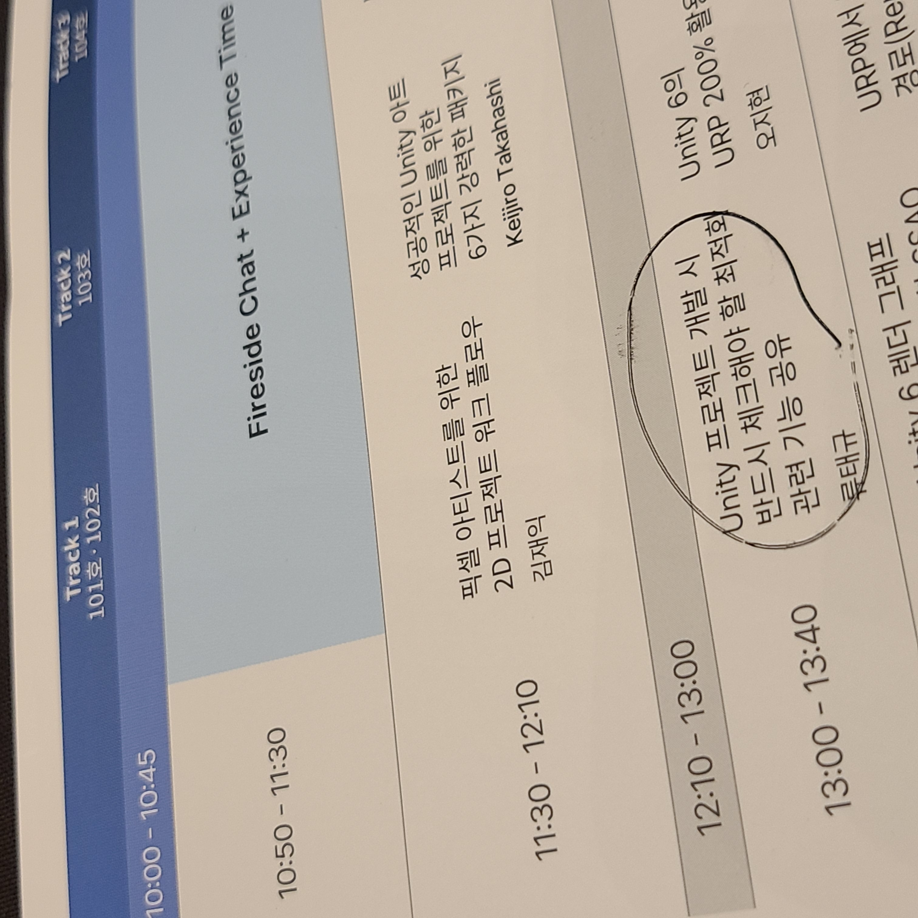 "이건 꼭 봐야 해!"라며 지인분이 동그라미까지 쳐둔 세션!