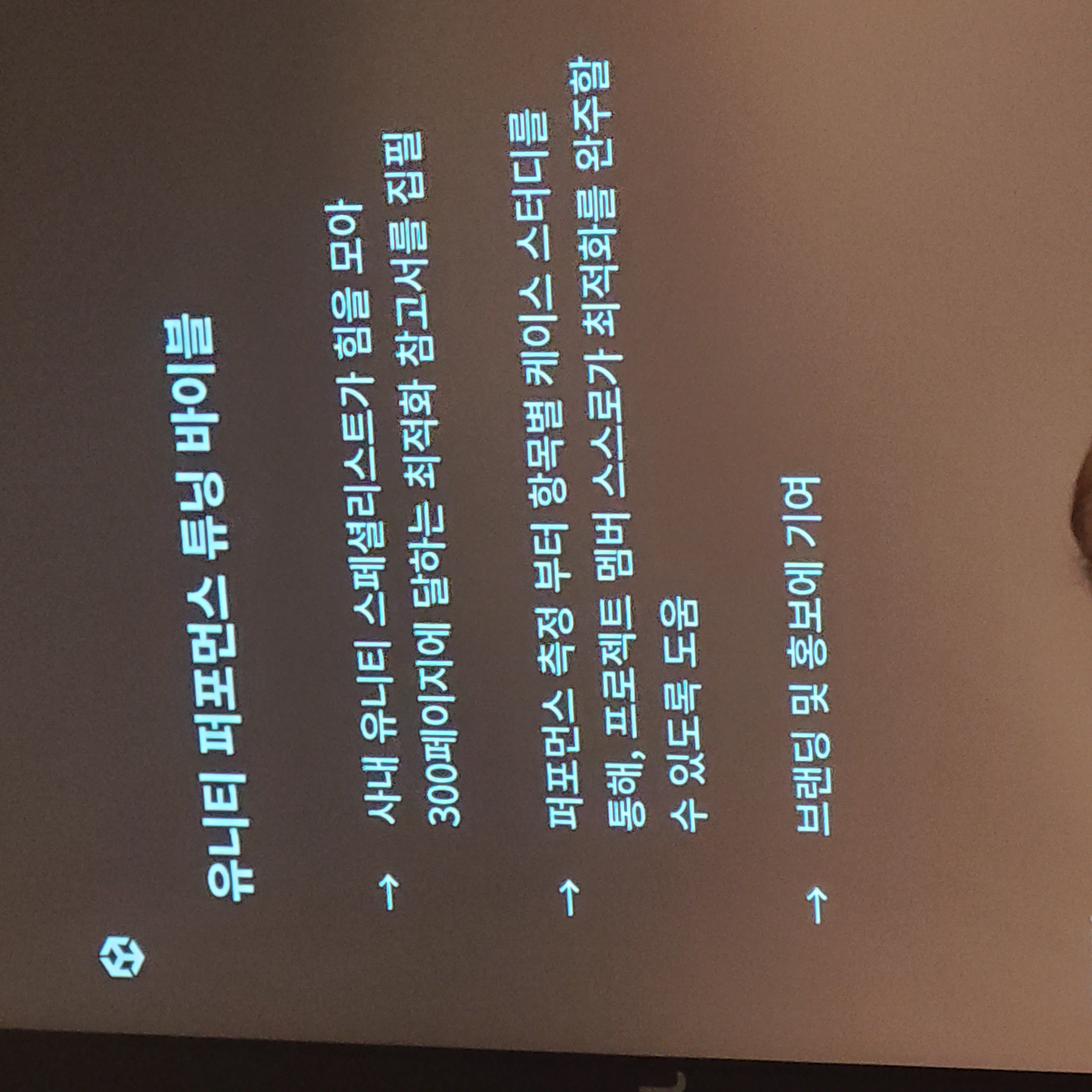 오후에는 Unity 에반젤리스트 오지현님의 세션도 들었어요.