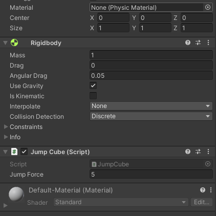 Inspector 창의 Jump Cube Component를 확인해보면,