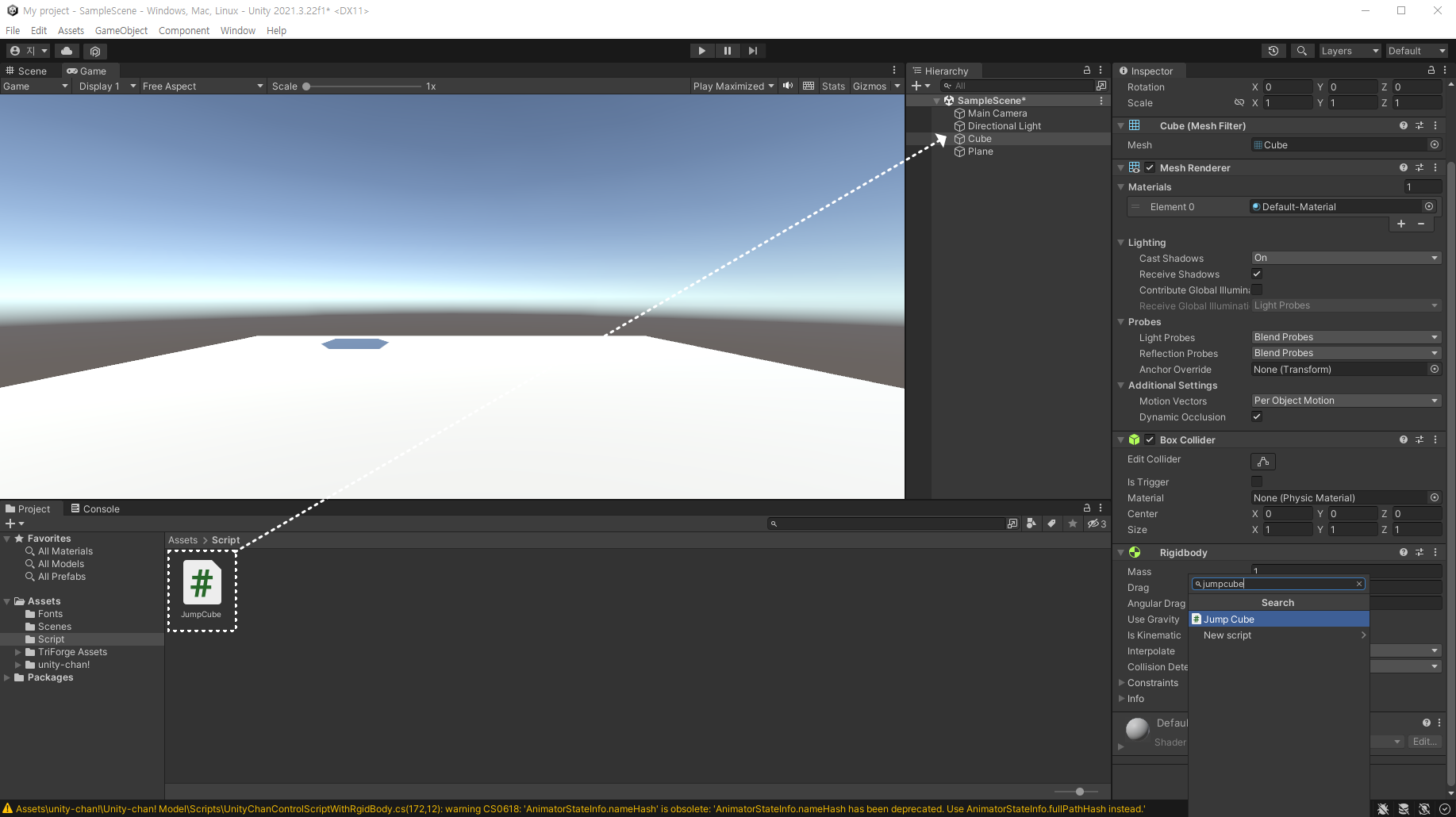 Script 이름을 JumpCube라고 입력해주겠습니다.