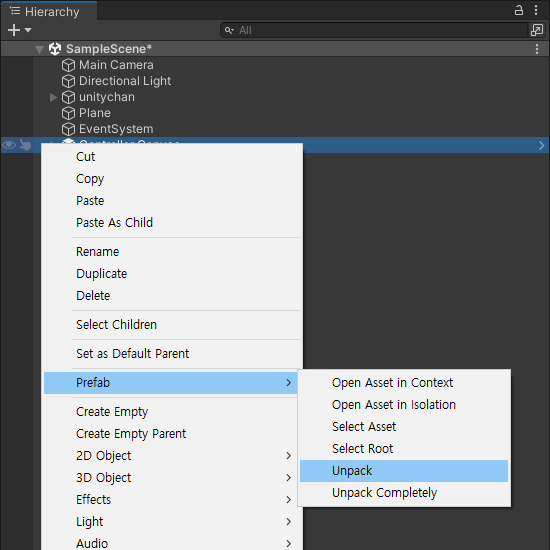 Prefab > Unpack 해줄게요!