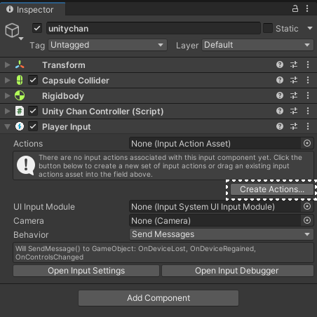 이제 UnityChanController 스크립트에 Legacy Input 방식을 사용하여