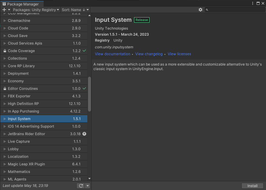 Package Manager > Input System을 찾아서