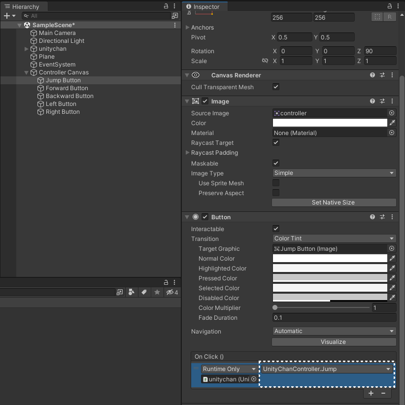 Unity Chan을 On Click Event에 연결해주고