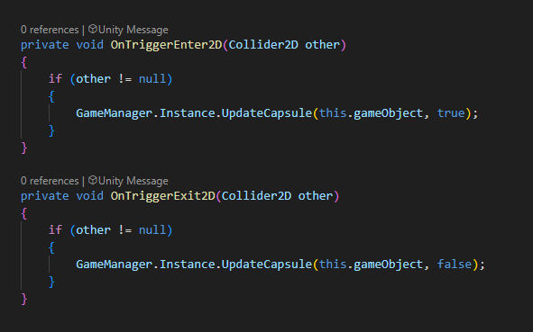 Capsule의 TriggerEnter, Exit에서 닿았는지
