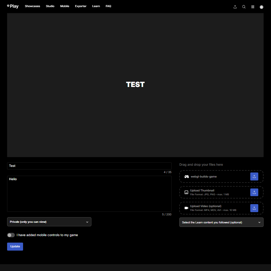 Unity 사이트에 올려서 게임을 공유해도 되고