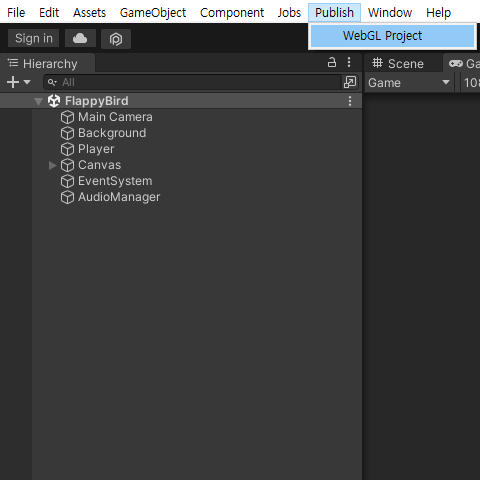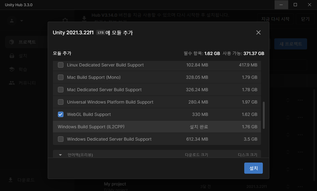 WebGL Publisher를 install 해줄게요