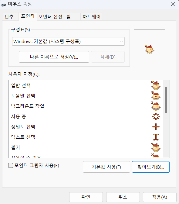 저는 제 캐릭터 점푸딩으로 제작해보았습니다