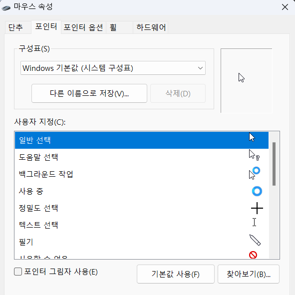 설정>Bluetooth 및 장치>더 많은 마우스 설정