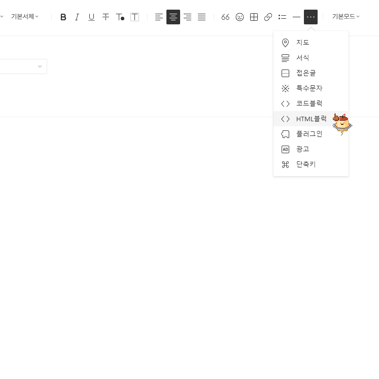 HTML 블럭을 선택해줍니다