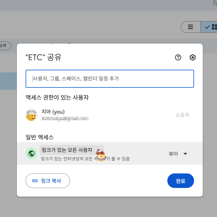 구글 드라이브의 영상 중 공유하고 싶은 영상의